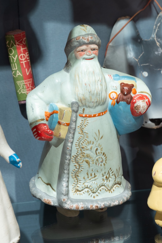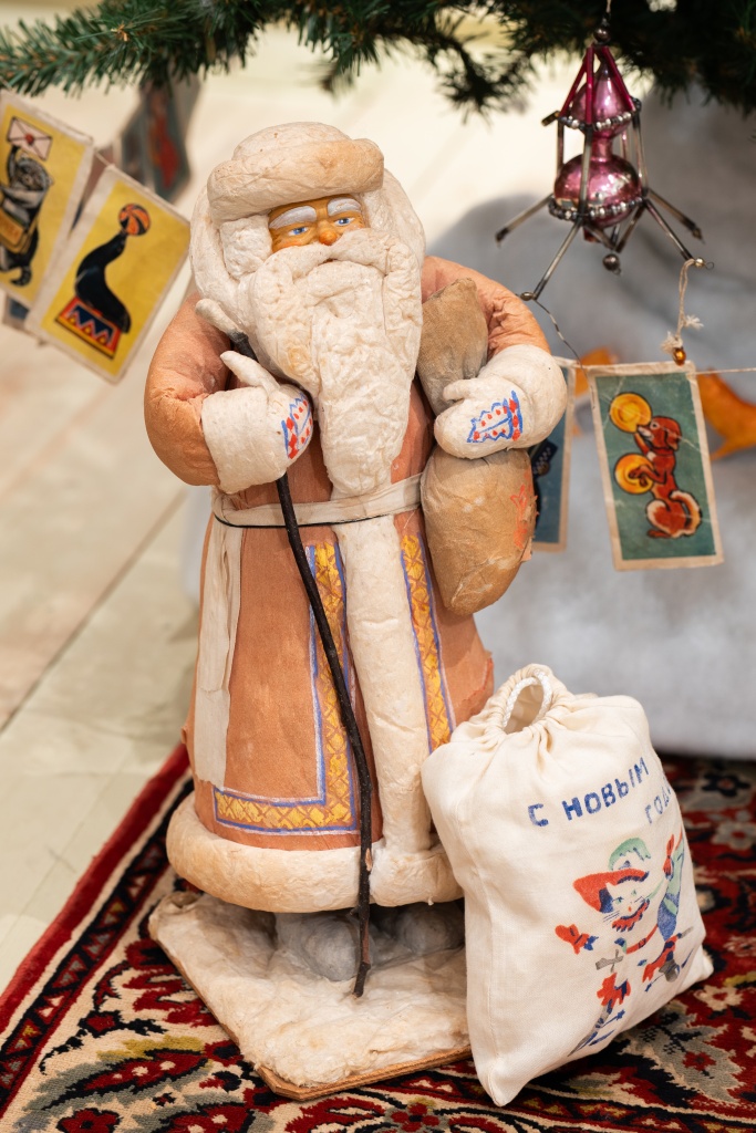 Вас ждут наряженные елочки: одна украшена старинными игрушками начала ХХ века, другая – напоминает о военном времени, с незатейливыми самодельными фигурками из ваты и проволоки. Есть и ёлка 1950-х годов – с лампочками и гирляндами, бусами и мишурой, разноцветными шарами и жанровыми игрушками из ваты, бумаги и картона.