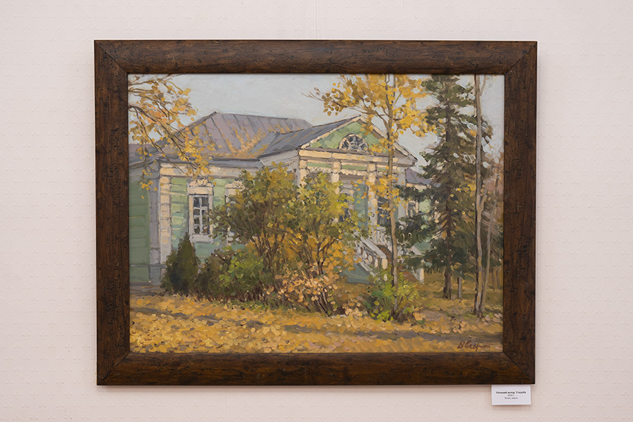 На выставке представлены работы разных лет, исполненные в технике офорта, акварели, пастели, темперы, масла. Это пейзажи Алтая, офорты с изображением храмовой архитектуры, городские и морские пейзажи Франции, Испании, Крыма, пейзажи с Волжскими просторами и бескрайними полями России, сельские пейзажи с туманами и ночным звездным небом. И, конечно, дом на Вифанской с колоннами на террасе, цветущей аллеей и уютными интерьерами внутри как символ места, где соединилось прошлое и настоящее в неразрывном единстве бытия.