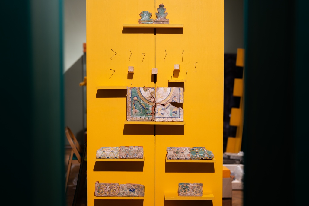 На выставке представлены изразцы, найденные на территории Троице-Сергиевой лавры при спасательных археологических исследованиях Подмосковной экспедиции Института Археологии РАН под руководством А.В. Энговатовой, а также изразцы из фондов Сергиево-Посадского музея-заповедника. Всего около 170 экспонатов.