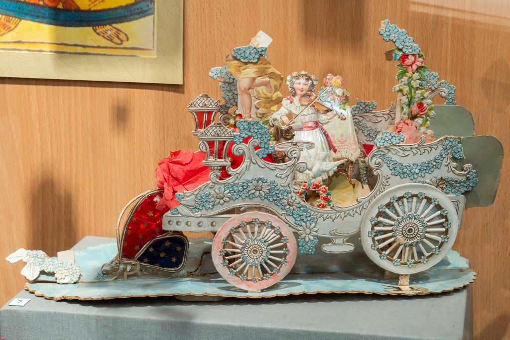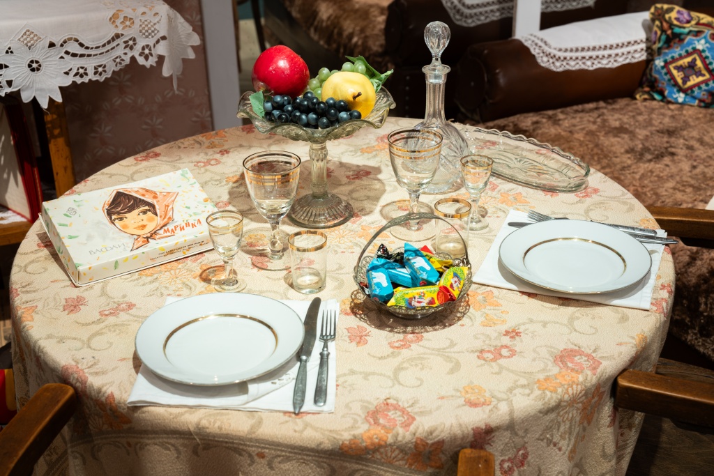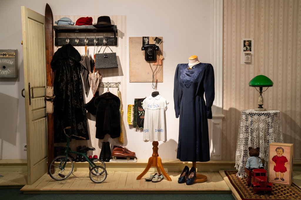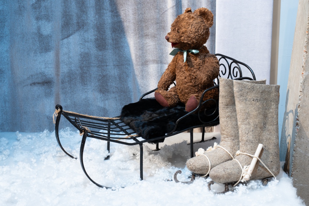 Вас ждут наряженные елочки: одна украшена старинными игрушками начала ХХ века, другая – напоминает о военном времени, с незатейливыми самодельными фигурками из ваты и проволоки. Есть и ёлка 1950-х годов – с лампочками и гирляндами, бусами и мишурой, разноцветными шарами и жанровыми игрушками из ваты, бумаги и картона.